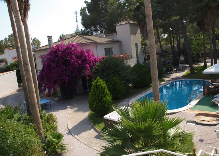 Jacuzzi, piscina, barbacoa, aire acondicionado, ping-pong, 2 o más neveras, 2 lavavajillas, internet de fibra de 1000 Mbps, TV gigante...